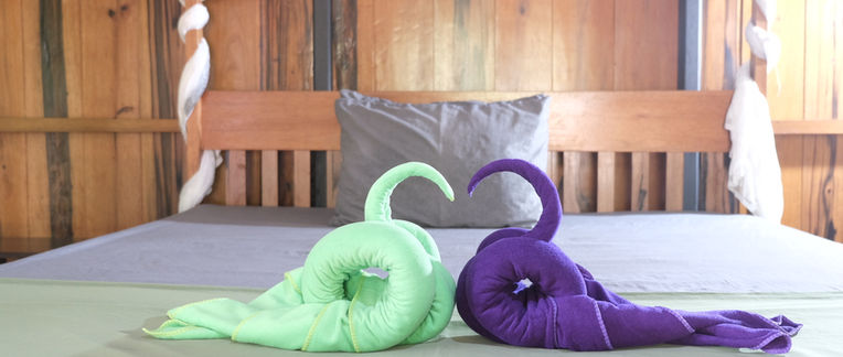 The houses are spacious (31 m2), light and have huge 15 m2 terraces. Modern bathrooms, fan, a hammock and a lot of privacy! All jungle houses have a king size double bed, and some also a single bed. Perfect for couples, 3 people, families or friends traveling together.